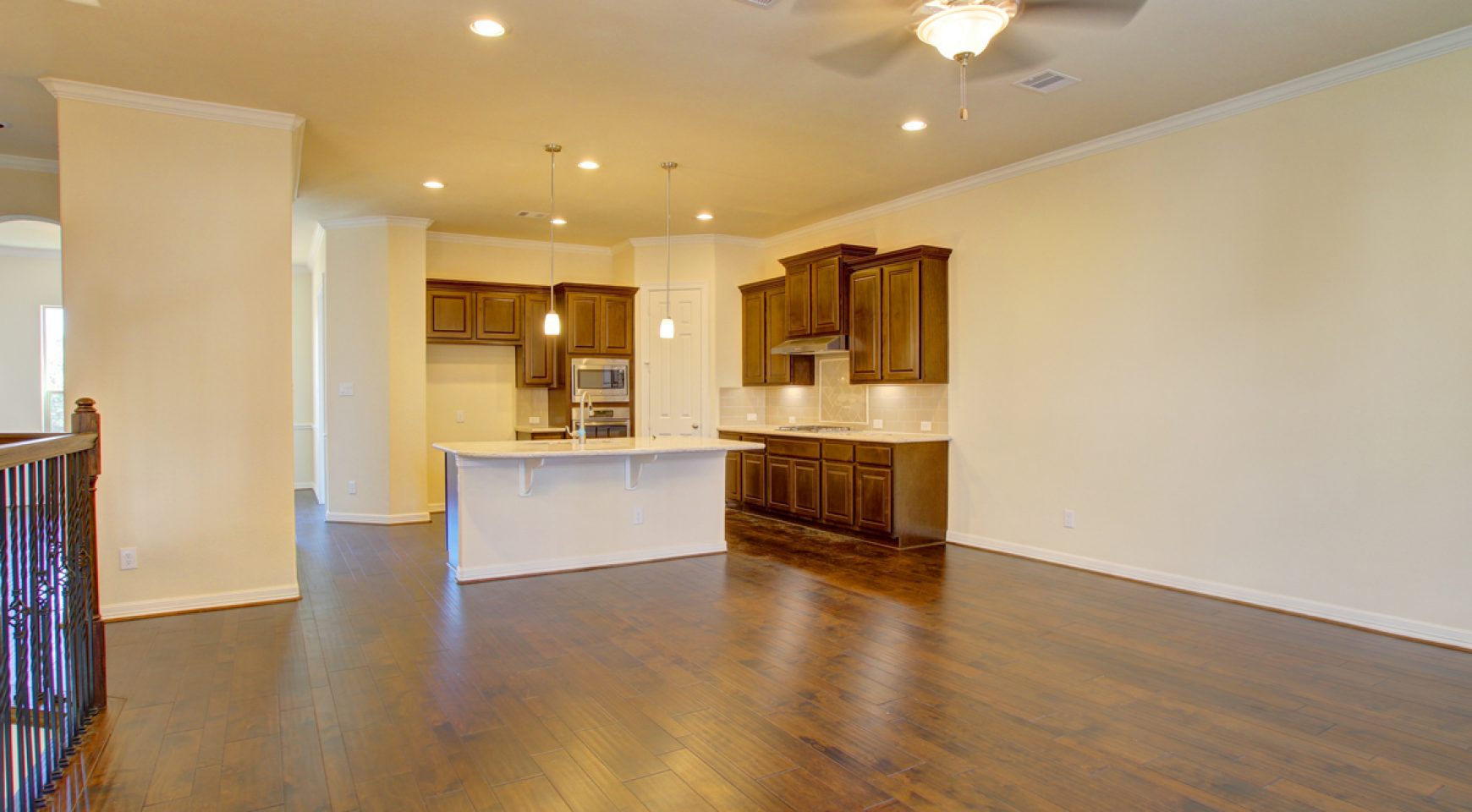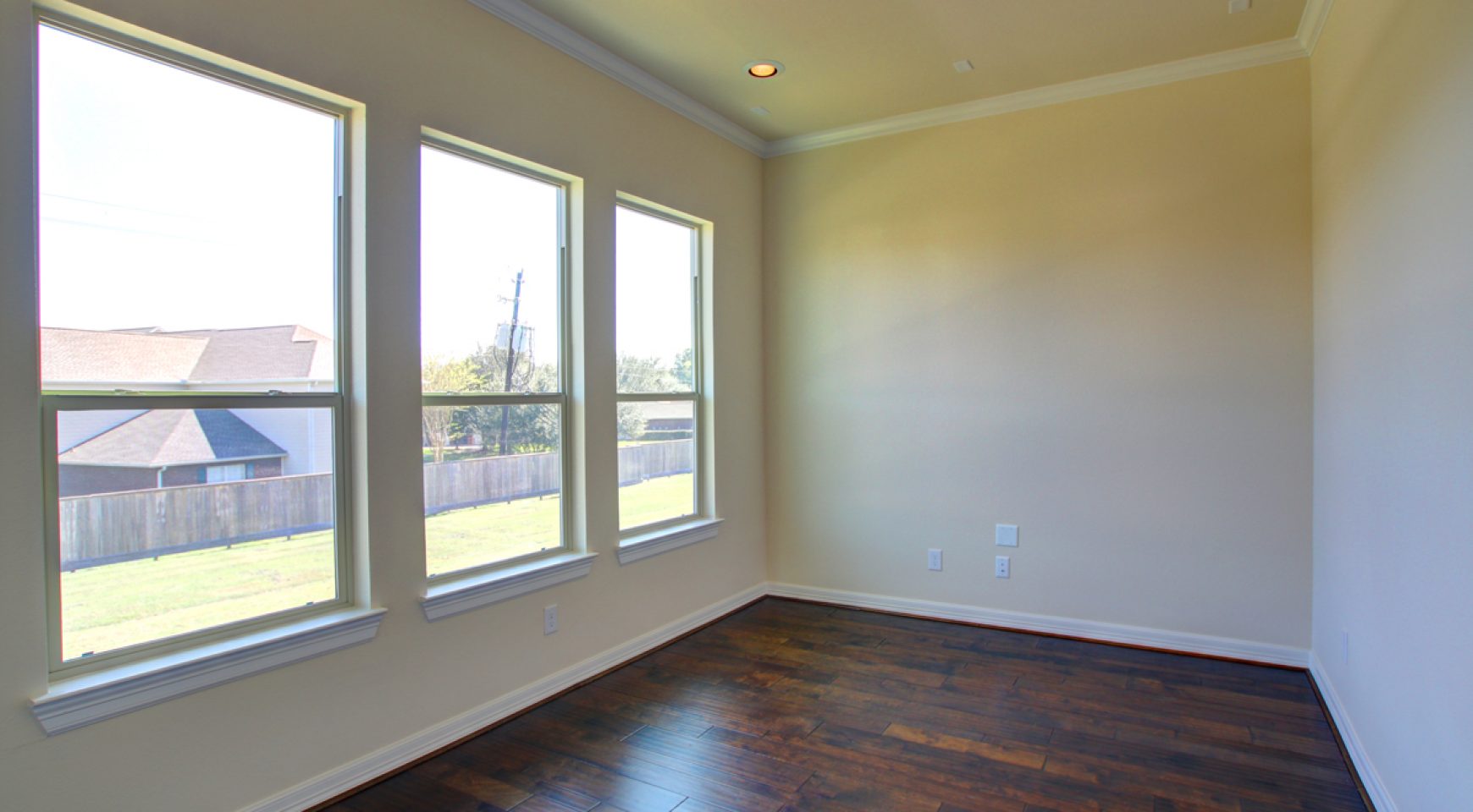 This Beautiful 3 story single family home has 3 Bedrooms, 3.5 bath with a study, formal dining and media room. The gourmet kitchen features a stainless steel appliance package, quartz counter tops, under cabinet lighting, and Kent Moore cabinets. The master bath features double sinks with vanity area, frame-less glass shower, whirlpool jetted garden tub, and oversized walk in closet. This home features wood flooring in the kitchen/dining and the family room with beautiful rod iron stair case.