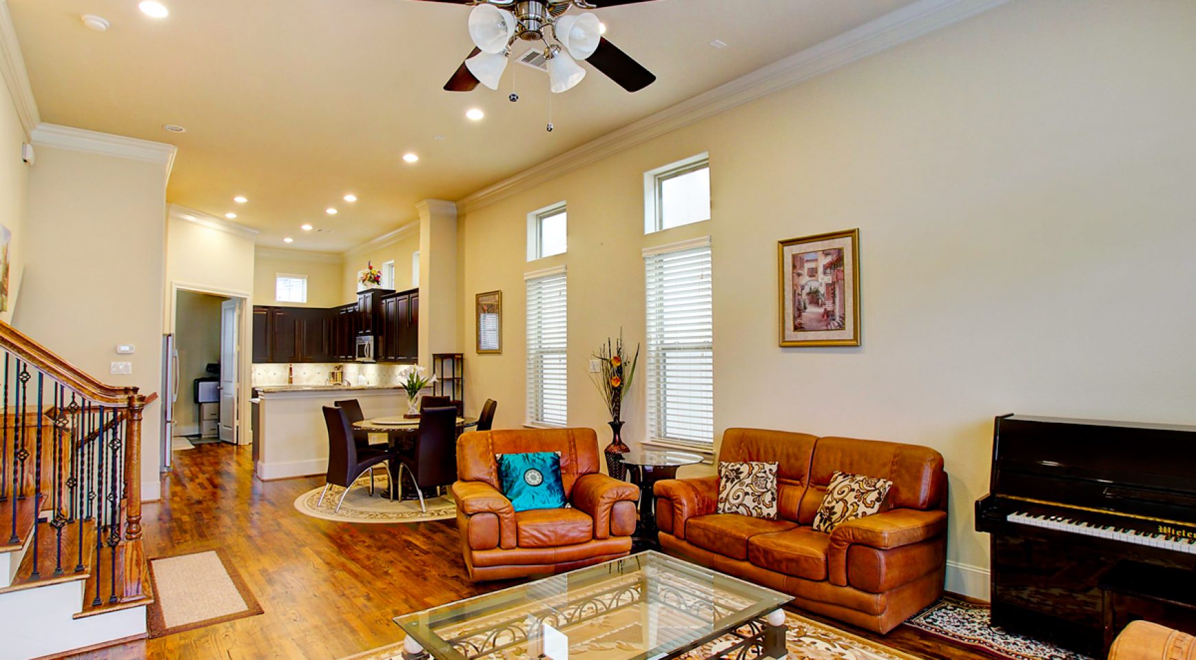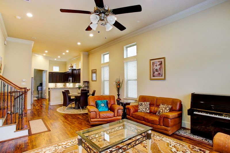Modern energy efficient gated home in Spring Branch! Features reclaimed hardwoods floors, geothermal heating/cooling, insulated windows, newly painted stucco. Perfectly located near BW8 & I-10 for convenience an easy commute! Home backs to a community lake w/ walking trail, pool & manicured grounds kept by HOA. Paved stone patio & second story balcony provide outdoor living space. Interior boasts 3 large bedrooms each w/ a private bath & spacious great room / kitchen area on second floor.
